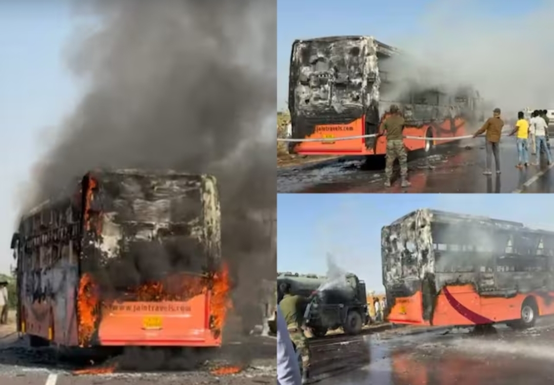 Jaisalmer Bus Accident: राजस्थान के जैसलमेर-जोधपुर हाईवे पर मंगलवार दोपहर एक दिल दहला देने वाला हादसा हो गया। जैसलमेर से जोधपुर जा रही एक AC स्लीपर बस अचानक आग का गोला बन गई। बस में सवार 57 यात्रियों में से 15 के गंभीररूप से झुलसने की खबर सामने आई है, जिनमें 3 मासूम बच्चे और 4 महिलाएं शामिल हैं। आग की लपटों से घिरे यात्रियों ने जान बचाने के लिए चलती बस से छलांग लगा दी।